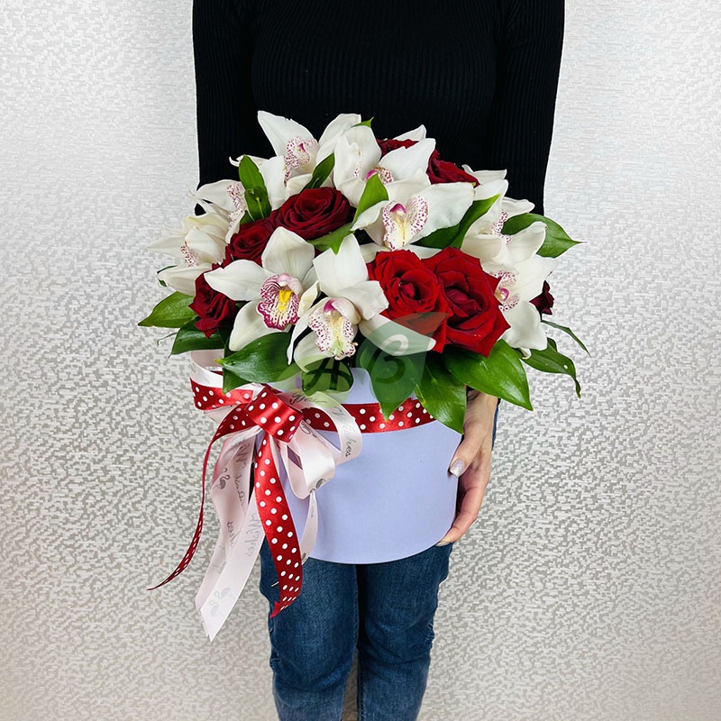 Композиция из цветов "Орхидея с розами"